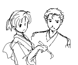 NVというのは、MSXで最大の発行部数をほこるディスクマガジンです。 MSX全盛期から現在まで10年近く北海道のサークル「SYNTAX」によって発行されています。 ポニーテールの子がミーサ、らくがおされているのがボボベベ。 SYNTAX発のRPG「シャドウヒーローズ4」のキャラクタで、道具屋の兄妹という設定です。 ボボベベは商売より戦士に向いているんですけど。 続編が発表されないまま、現在はいいように扱われています。 がんばれ、お兄ちゃん!
