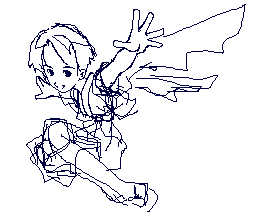 | このホームぺージのタイトルでもある「天つ風」をイメージして描きました。 上のCG「WING」のキャラと似ないように、たすきがけや袴など服装を換えてみてます。 翼の表現もより墨絵チックにしています。