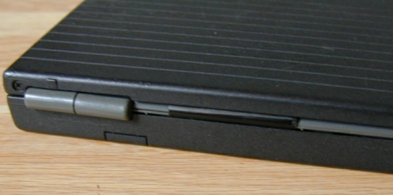 ノートパソコンのような2ツ折りのスタイルで、液晶パネル右上にバーコードリーダーユニットがあるので、その部分は変則的な形となっています。