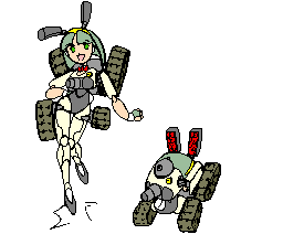単体時での武器は、3人ともキャタピラ部分の変形です。ブルマ戦車さんとセーラー戦車さんの武器は同じです。