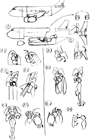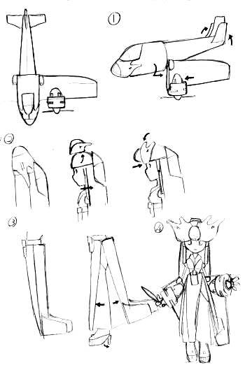 ジャンボからスチュワーデスへの変身、という案を元に形にしてみました。