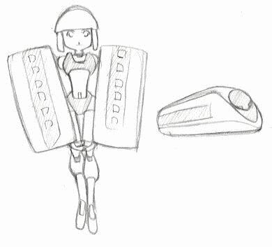 あるいは翼部分を刃物として、ロケットパンチで遠距離の敵を切り裂く、というのでもいいかな。