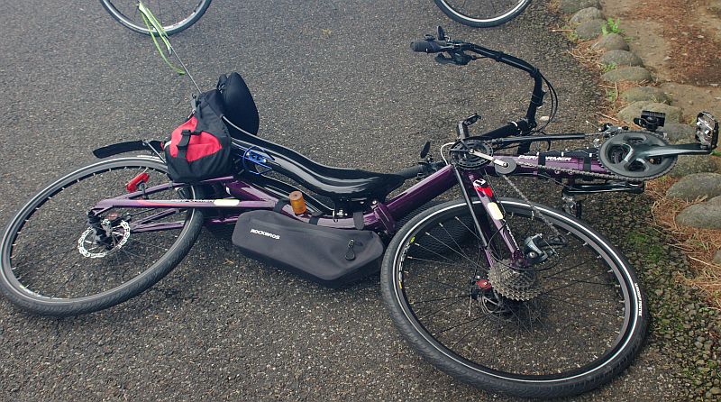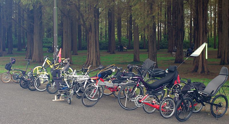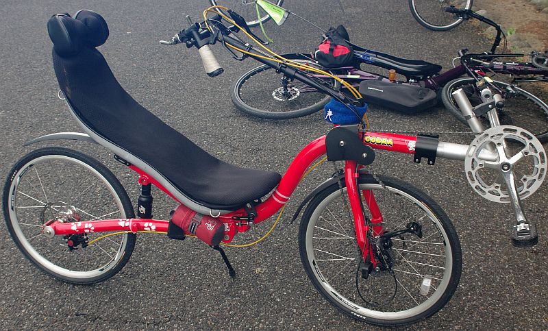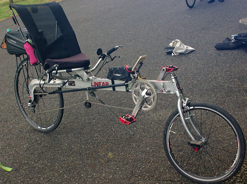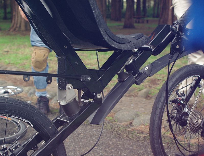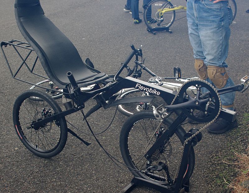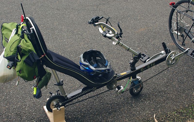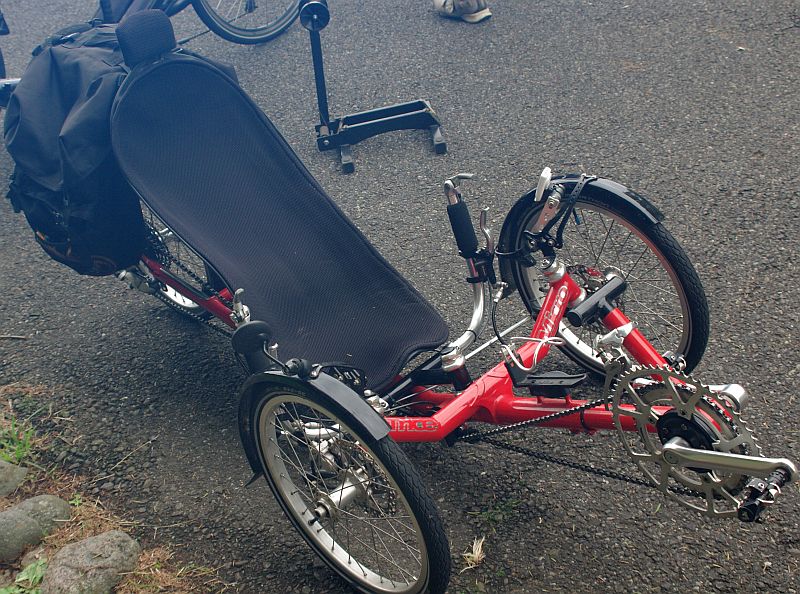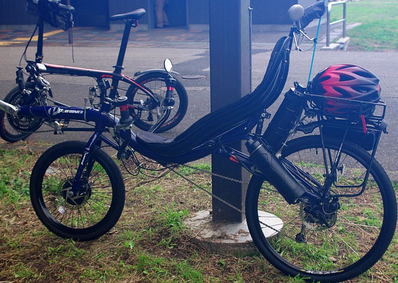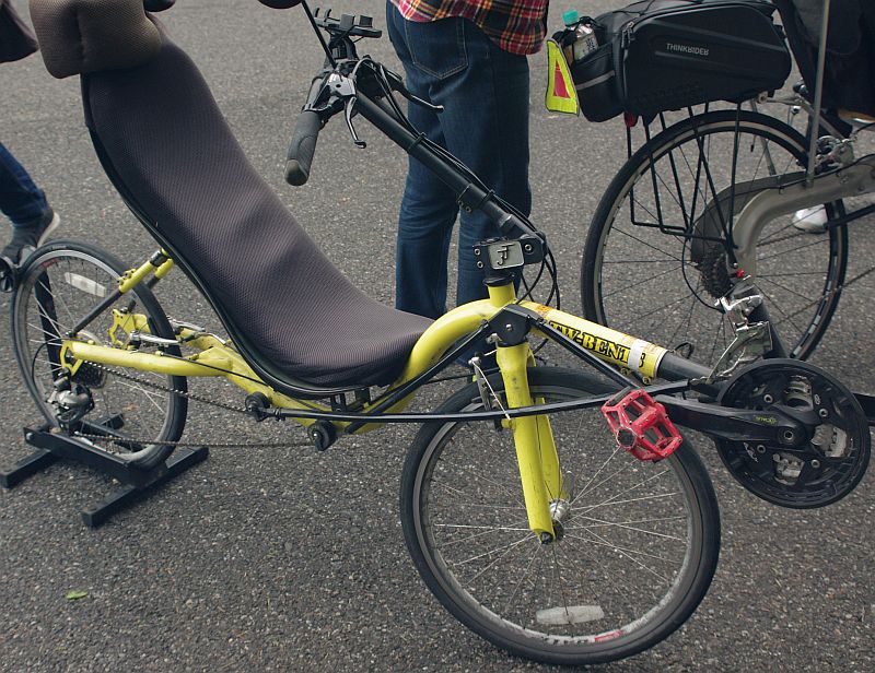 ホイールベースが長いセミリカンベント。シート部分を前に倒して折りたたむことが出来るそうですが、車体が前後に長いのでそこまでコンパクトになるわけでもないようです。