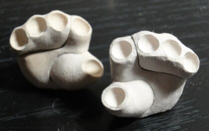 凹み部分の調整も大方終わって、あとは指の可動に合わせた切り抜きと、凹みに合わせた整形。
