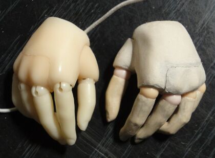 SD/DD指可動手首の原型製作を進めてますが、左手のひらパーツのパーツ合わせの調整がおおむね終わり、指パーツとの合わせ部分の削り込みに入りました。